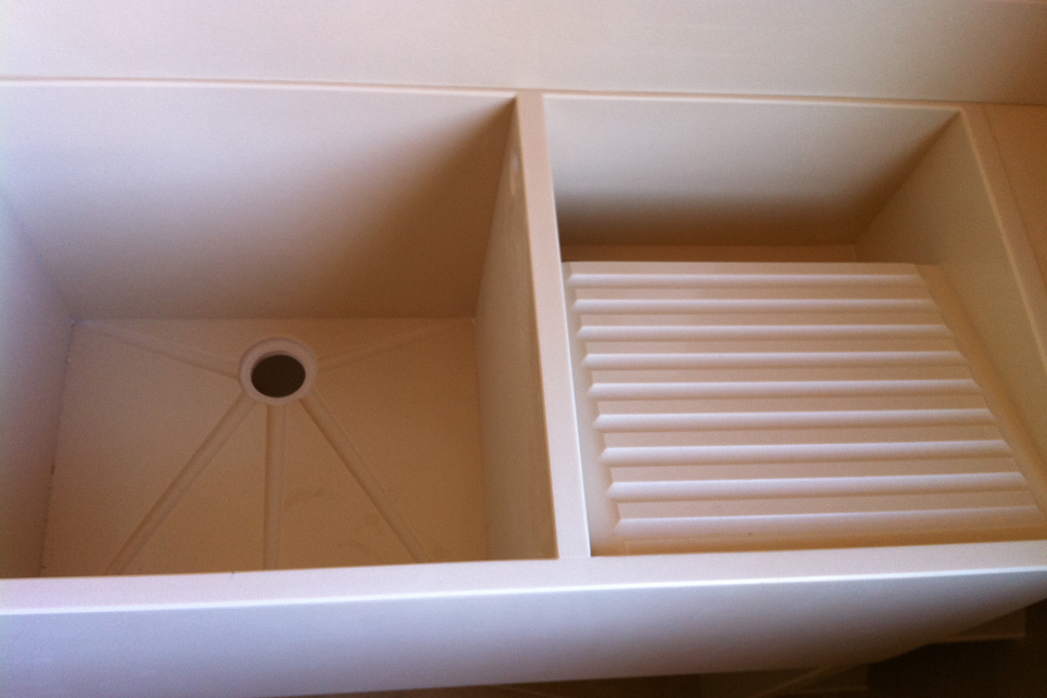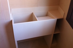Our traditional whasing sink are made with two independence zones, one for the cloth washing tasks and other to the soaking or also to the water storage, both with an independet drain. This model let the option of make it in any material, adapting to the custom likes and with the option of add a countertop and diverse shelves that let the storage.