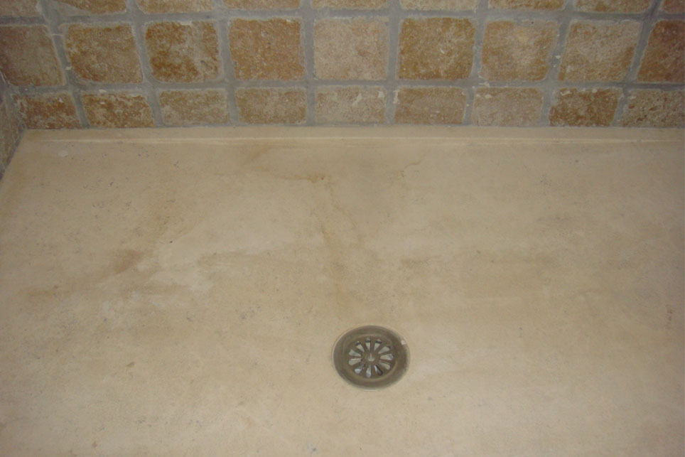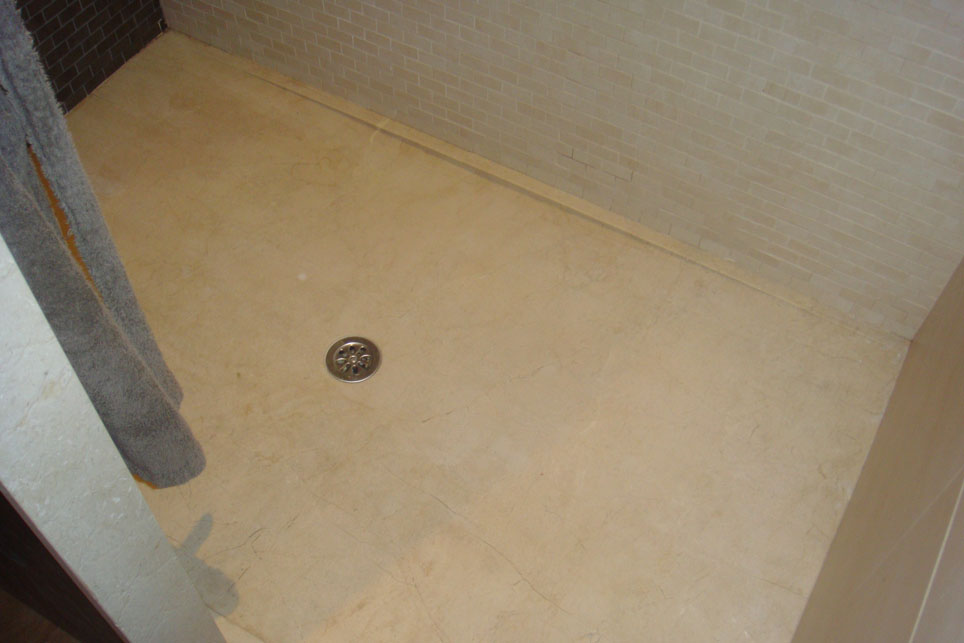 Plato de ducha rebajado sobre una pieza maciza.  El plato se elabora de forma artesanal en una sola pieza creando una terminacion muy especial.